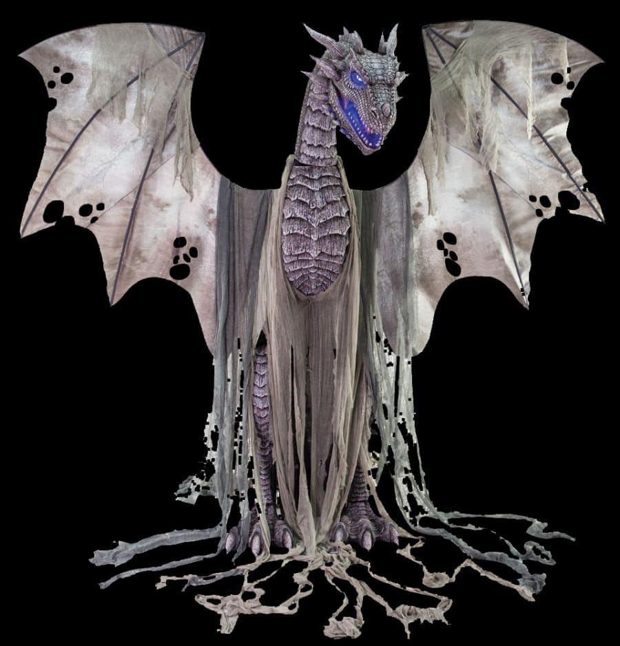The Winter Dragon's massive wings gracefully flap, and its mouth opens wide to unleash a range of eerie sounds, from bone-chilling roars to deep growls. Motion sensors activate the dragon's animations and sounds, surprising guests with an unexpected scare. The icy theme is accentuated by LED lights that illuminate the dragon's eyes and accents, creating a mesmerizing effect that captures the essence of a winter fantasy.