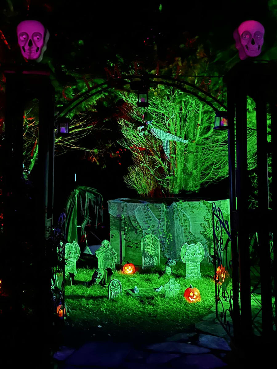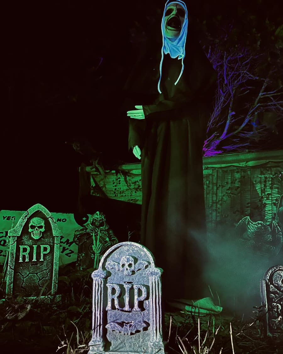 Transform your Halloween décor with our eerie Graveyard Scene prop! This chilling set includes everything you need to create a bone-chilling atmosphere, from pumpkins and cemetery gates to haunting lighting and ominous gravestones.