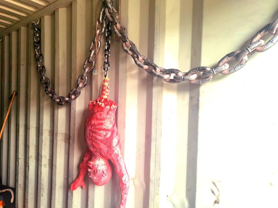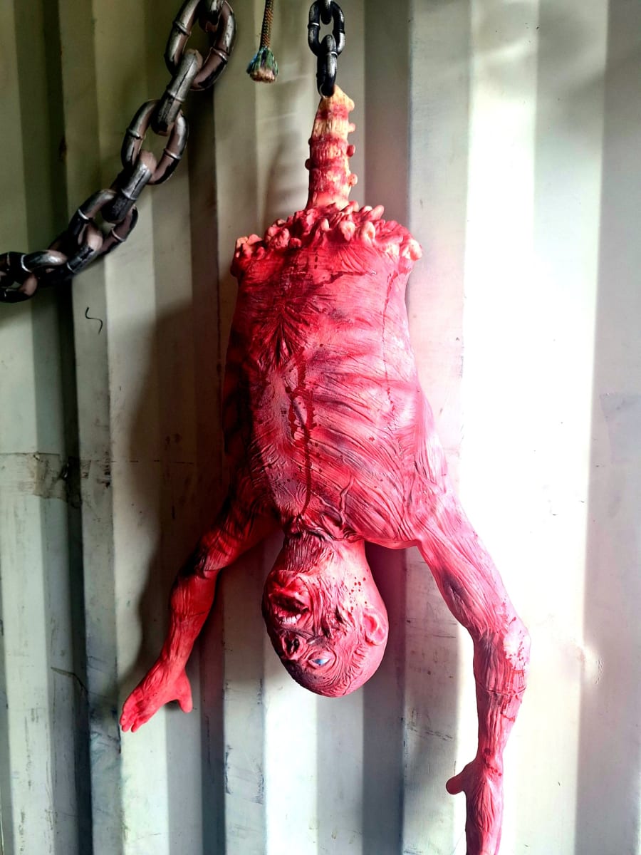 The Torture Scene prop is designed to create a creepy ambiance and grab the attention of your guests. Perfect for haunted houses, escape rooms, or Halloween events, this prop adds an element of terror and suspense to your thematic setting.