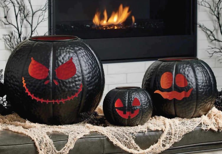 Black Metal Jack-o'-Lantern Set for Hire 🕯️ Bring a bold, eerie charm to your Halloween event with our Striking Black Jack-o'-Lantern Trio. These high-impact, hammered-metal pumpkins feature glowing red cut-out faces and a sleek matte-black finish—perfect for creating a chilling atmosphere at parties, corporate events, photo shoots, or haunted house setups.