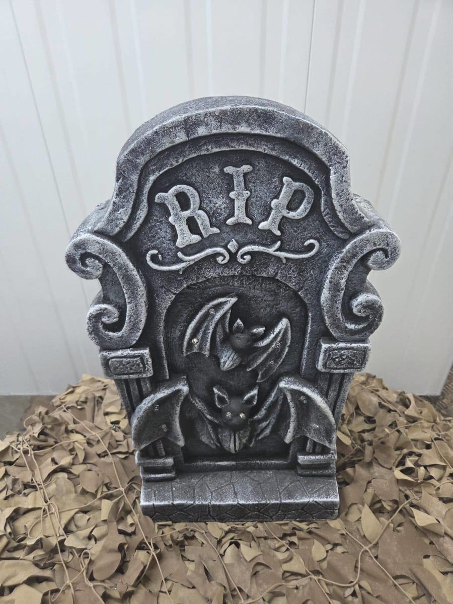 Set the scene for a spooky night with our RIP Bat tombstone prop, a must-have for Halloween parties and haunted events. Featuring bold RIP lettering and a menacing bat design, this gothic gravestone adds a chilling, classic touch to any horror-themed setup.