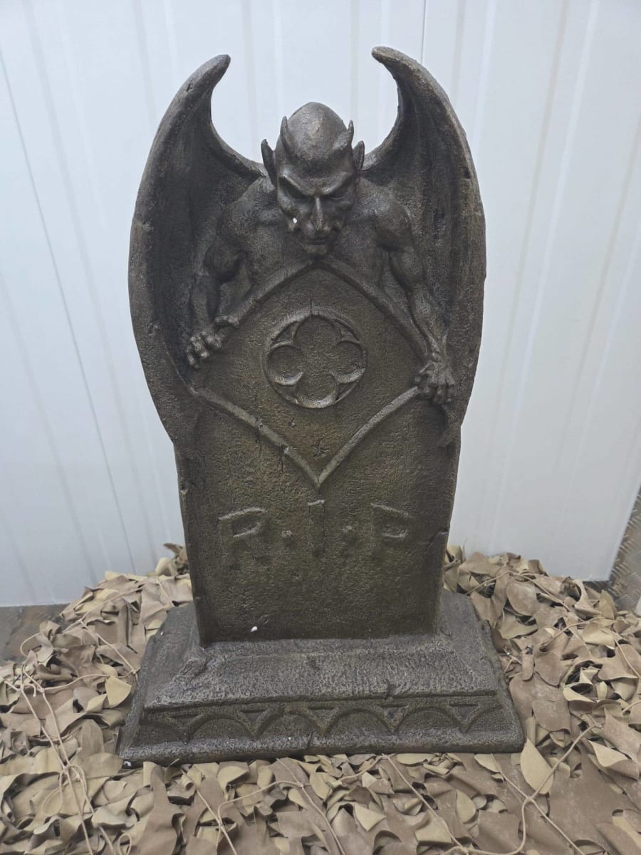 Give your Halloween event or haunted attraction a terrifying edge with our Demonic Guardian tombstone prop. Featuring a menacing gargoyle-like demon perched over a weathered gravestone engraved with RIP, this piece is perfect for adding a truly chilling atmosphere.