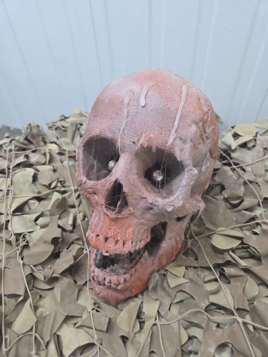 Add a gruesome touch to your Halloween scene with our Blood-Dripped Skull prop. With chilling red stains, creepy cobweb detail, and eerie realistic features, this skull is perfect for creating a spine-tingling atmosphere.