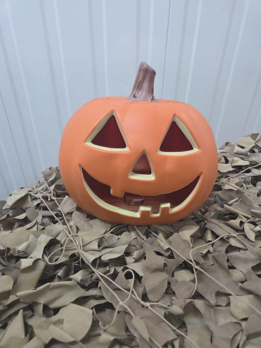 With its wide grin and bright orange finish, this jack-o’-lantern is the perfect cheerful touch for Halloween displays.