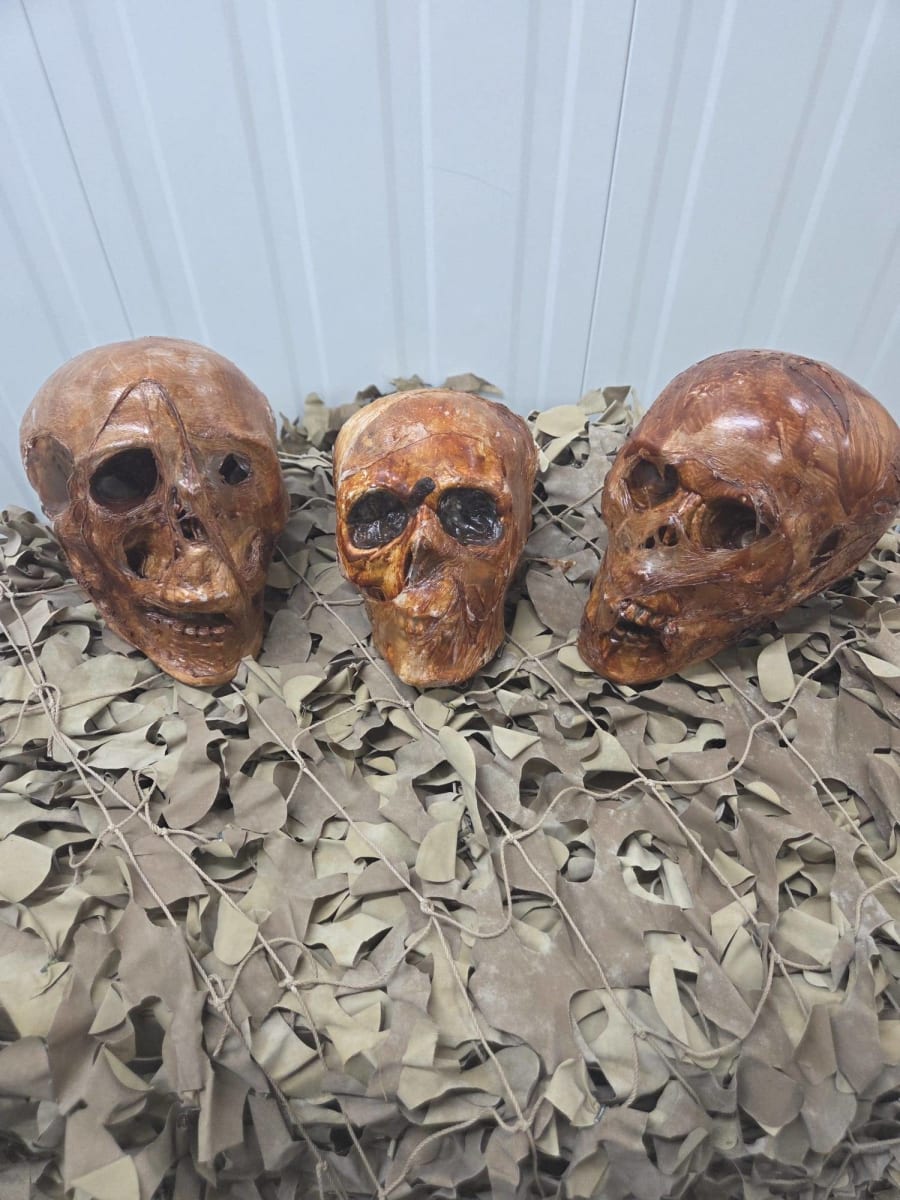 A trio of aged, distressed skulls with a bone-chillingly realistic finish.
