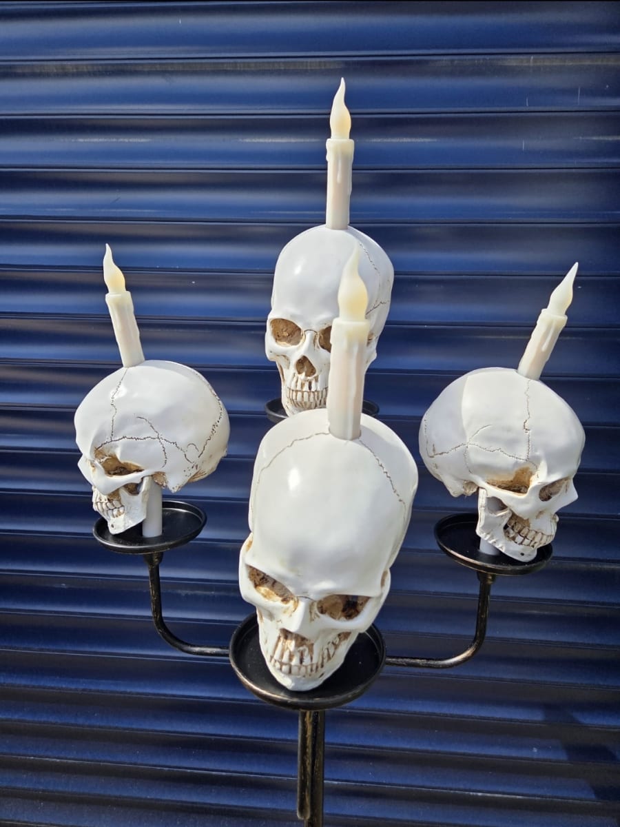 Transform your venue into a mesmerising, otherworldly realm with our Skull Candelabra. This innovative lighting fixture isn't just a source of light—it's a conversation starter and a centerpiece for any room. Designed to seamlessly blend the eerie charm of a skull with the functional brilliance of a candelabra, this unique product is perfect for anyone looking to add a touch of the extraordinary to their living space.